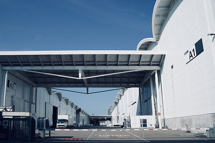 Ceilings are largely free of pillars, giving plenty of design freedom, and permitting suspension of heavy loads. Every hall has excellent access facilities through at least one gate. Large logistics yards are available to reduce assembly and disassembly times. Parking spaces are available next to and below the exhibition halls.