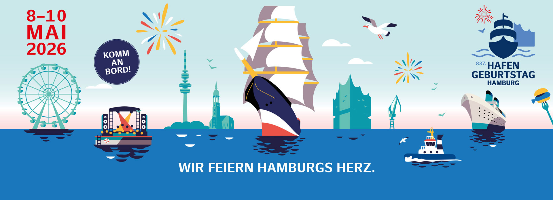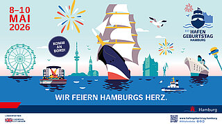 Hier finden Sie das Keyvisual und das Plakat des HAFENGEBURTSTAG HAMBURG in unterschiedlichen Dateiformaten (auch für die Verwendung in Social Media-Kanälen). Weitere Formate folgen.